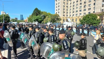A la espera del fallo de Casación que podría ratificar la condena de Cristina Kirchner en la causa Vialidad, se desplegó un fuerte operativo de seguridad en la zona de los tribunales de Comodoro Py. Las fuerzas de seguridad se apostaron en el lugar donde, además de quienes respaldan a CFK, hay un grupo de mujeres que piden la condena inmediata de la ex presidenta. Desde un parlante se escucha en loop la marcha de San Lorenzo.