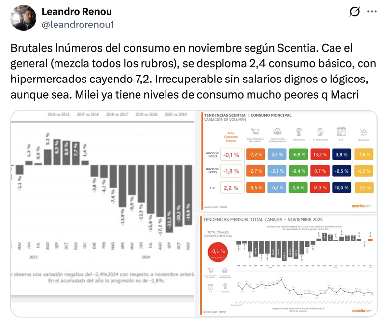 ¿Y la "ayuda" del Tesoro de Estados Unidos, el "whatever it takes" de Scott Bessent, la posibilidad de seguir convirtiendo en deuda tramos del swap por 20.000 millones de dólares? Es raro: ya ni se habla de eso.